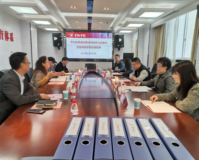 2023年11月28,贵州省语言文字工作专家检查组杨震、韦萍、章鸿茜、杨计、李培勇一行到金年会进行普通话测试工作的检查与指导。金年会jinnianhuicom语言文字工作小组全程陪同(教务处处长孟俊一、副处长刘合财、副处长蒋泽标、教育科学学院院长阮朝辉、文传学院副院长王刚、考务现场负责人刘锋、龚政等)。