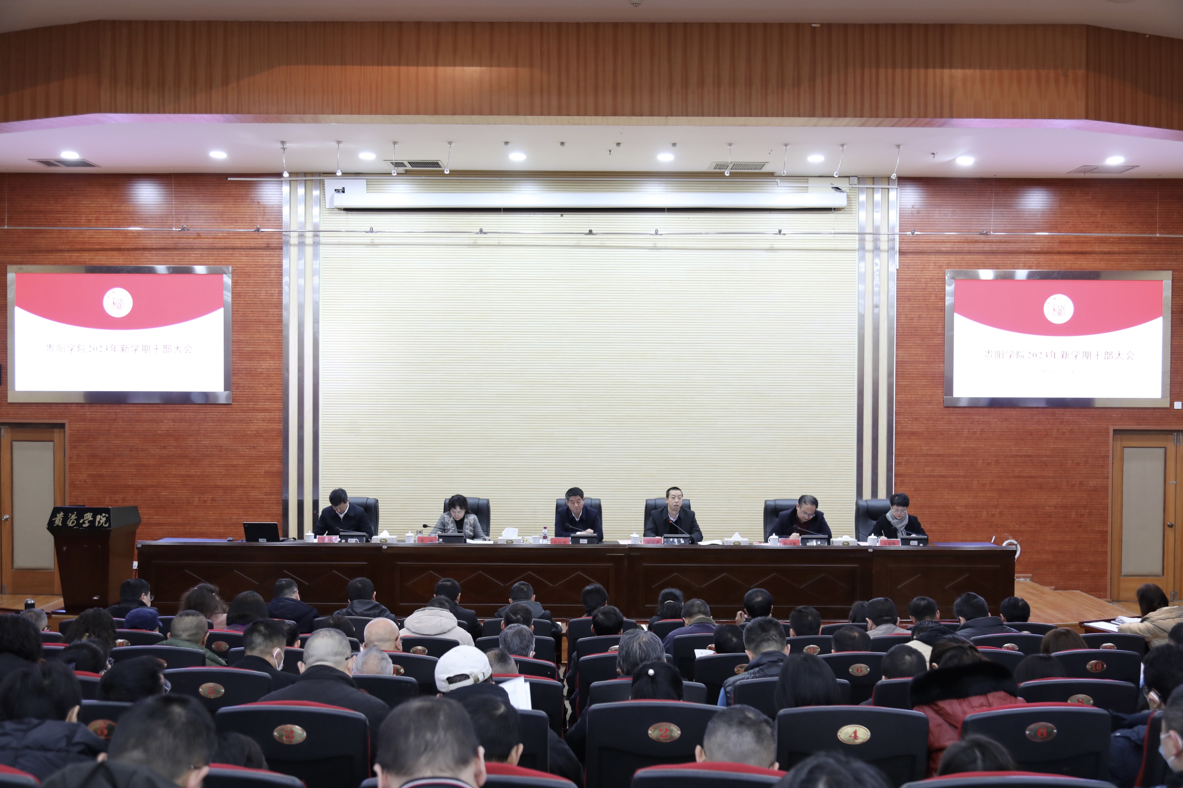 2023年2月24日,学校在图书馆报告厅召开2023年春季学期开学干部大会。会议深入学习贯彻党的二十大精神,对2022年的工作进行总结,并安排部署2023年工作。校党委书记吕保平,党委副书记、校长邓朝勇,党委副书记焦艳、赵福菓,副校长刘刚、王蜀黔出席会议,全校科级以上干部及各专业学院教研室主任参加会议,会议由焦艳主持。