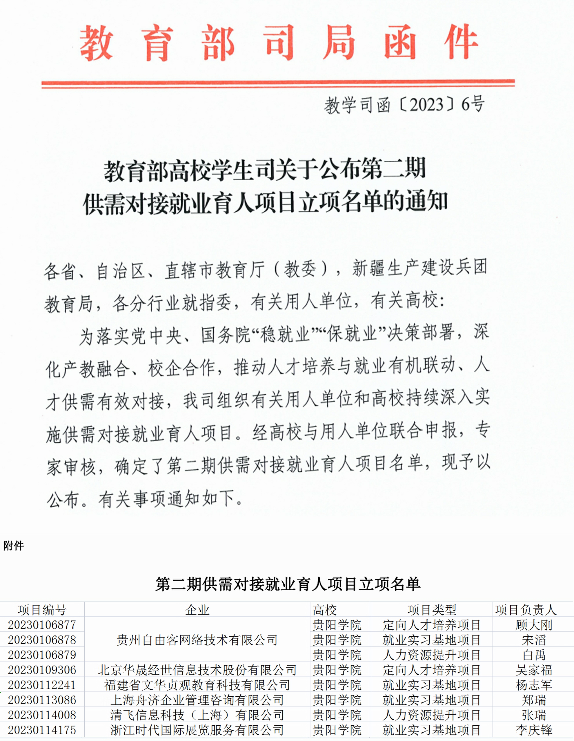 近日,教育部公布了第二期供需对接就业育人项目立项名单,金年会jinnianhuicom招就处牵头组织申报的8个项目顺利通过审批并获准立项。