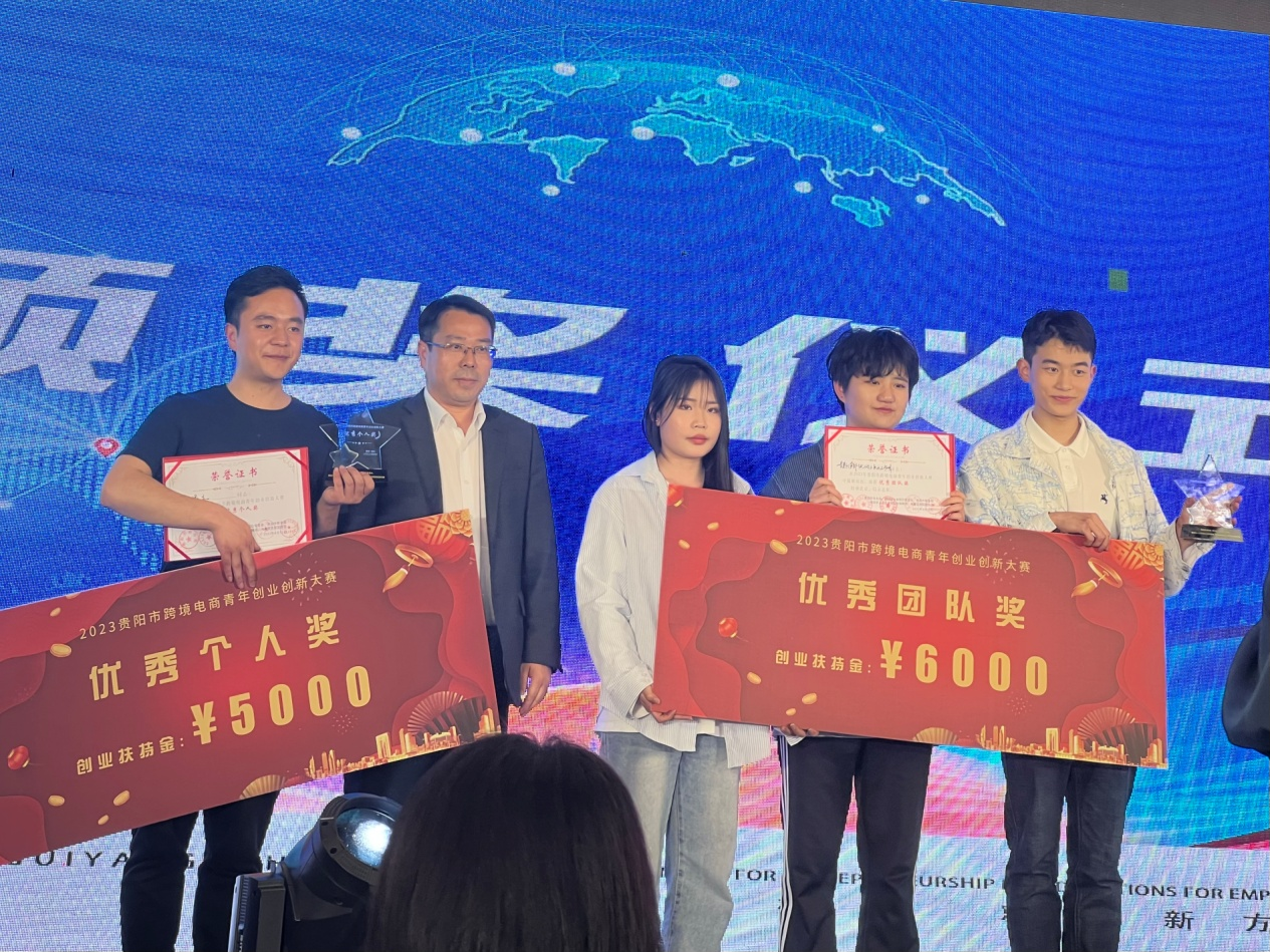 2023年4月12日,金年会jinnianhuicom“贵黔小卖部”直播团队在贵阳市跨境电商青年创业创新大赛决赛中脱颖而出,荣获唯一一个“优秀团队奖”,获创业扶持金6000元。