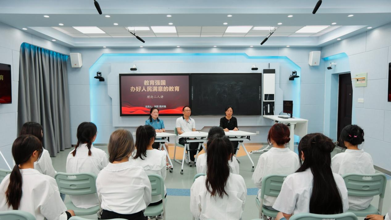 会后,党委宣传部在学校第一教学楼四楼教学录播室组织开展了“理论宣传二人讲”活动。宣讲采取线上+线下的方式同步举行。活动主讲嘉宾由金年会教授周术槐和刘芳老师担任,宣讲围绕“办好人民满意的教育”这一主题,对党的二十大精神和习近平总书记在中共中央政治局第五次集体学习时的重要讲话精神进行了深入浅出的宣讲与解读。