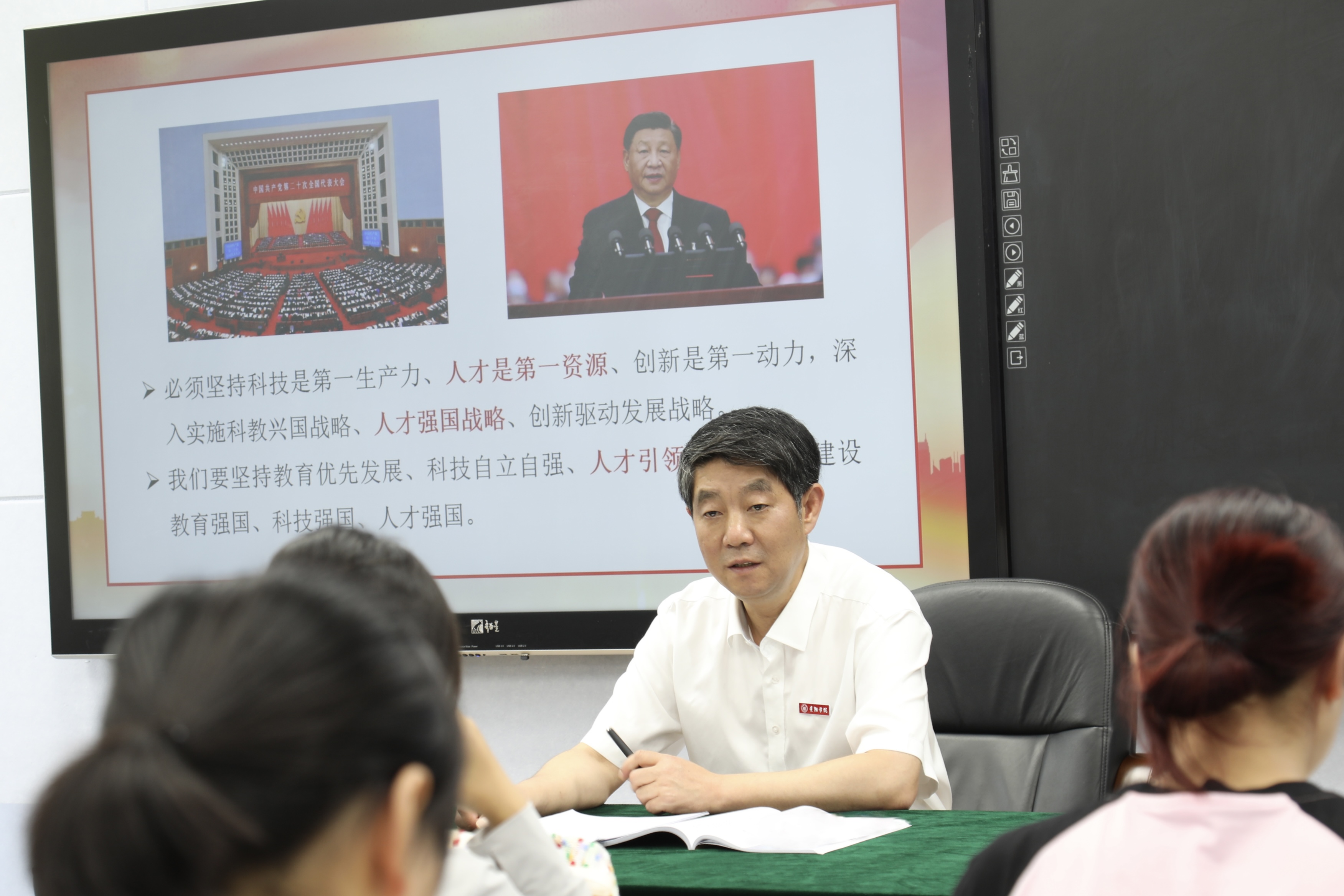 6月27日,校党委书记吕保平以“聚天下英才,筑强国之基”为题,为2021级英语专业3班学生讲授了一堂精彩生动的形势与政策课。