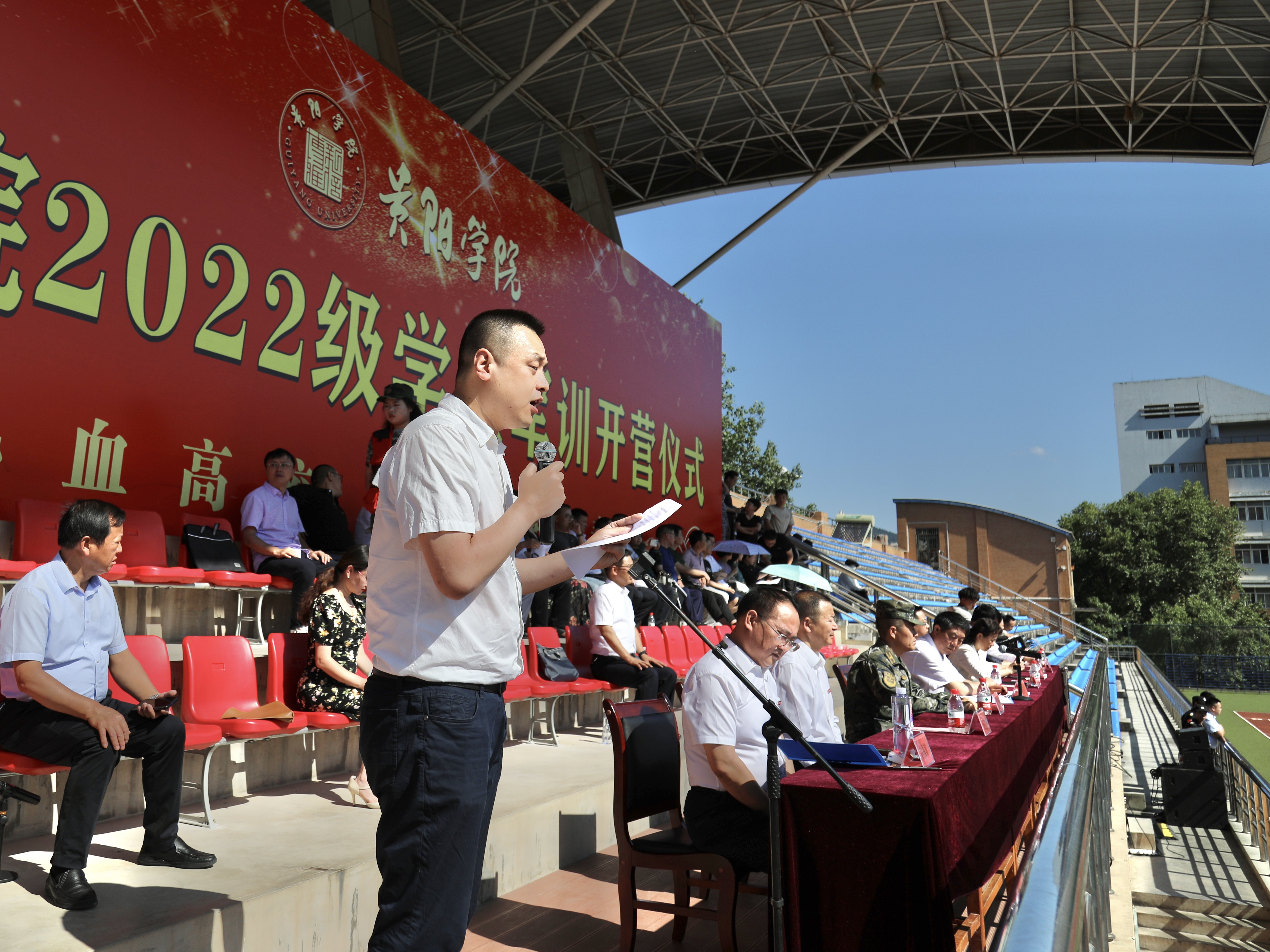 7月17日上午,金年会jinnianhuicom2022级学生军训开营仪式在体育场隆重举行,校党委书记吕保平,党委副书记、校长邓朝勇,校领导焦艳、赵福菓、汪建初、李灿、王蜀黔,武警贵州省总队贵阳支队执勤四大队副队长王志鹏出席开营仪式,全校副处级以上干部、辅导员、2022级学生班主任、军训教官及2022级本科学生参加开营仪式,仪式由党委副书记赵福菓主持。