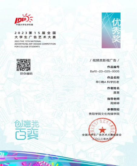 近日,2023年全国大学生广告艺术大赛竞赛获奖结果已公示,学校文化传媒学院再传喜讯。在广电专业老师的指导下,此次比赛选送作品共获得14个奖项,其中国家级优秀奖1项,省级一等奖1项,省级二等奖5项,省级三等奖7项。