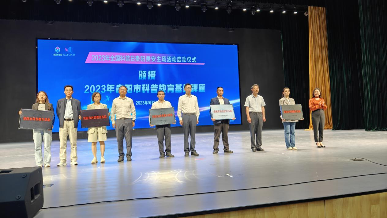 启动仪式上,贵阳市人民政府副市长、贵阳贵安全民科学素质工作领导小组组长宋旭升,金年会jinnianhuicom党委书记吕保平,贵阳市科协党组书记、主席、贵阳贵安全民科学素质工作领导小组副组长杨菲等为获得“全国科普示范县(市、区)”的白云区、南明区以及2023年贵阳市科普教育基地授牌,并为在第十八届宋庆龄少年儿童发明奖国赛中获得金奖等奖项的学生代表颁发获奖证书。之后,宋旭升宣布“2023年全国科普日贵阳贵安主场活动”正式启动。