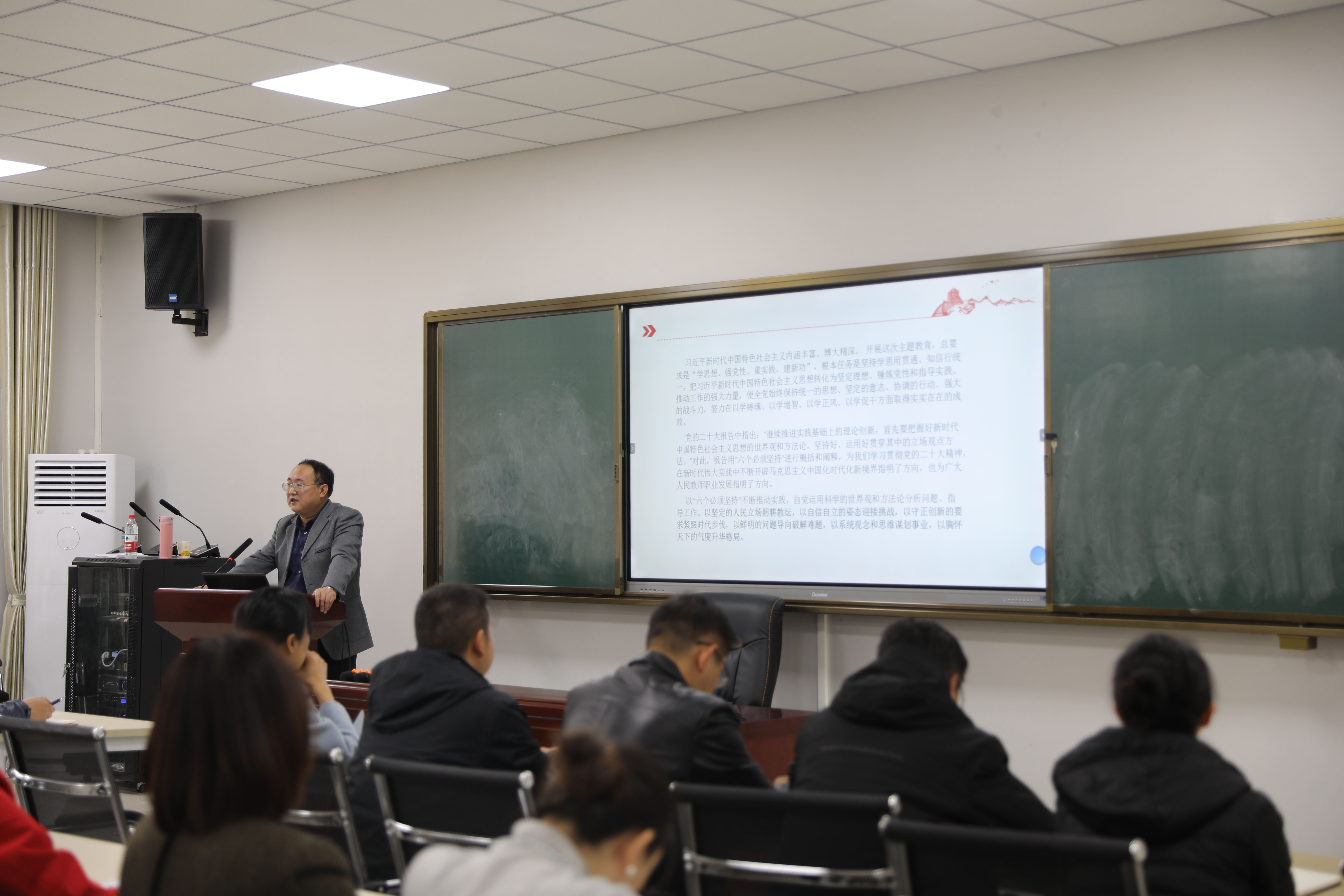 赵福菓强调,要突出贯彻落实四项内容,自觉运用科学的世界观和方法论分析问题、指导工作。以坚定的人民立场躬耕教坛,以自信自立的姿态迎接挑战;以守正创新的要求紧跟时代步伐;以鲜明的问题导向破解难题;以系统观念和思维谋划事业;以胸怀天下的气度升华格局。