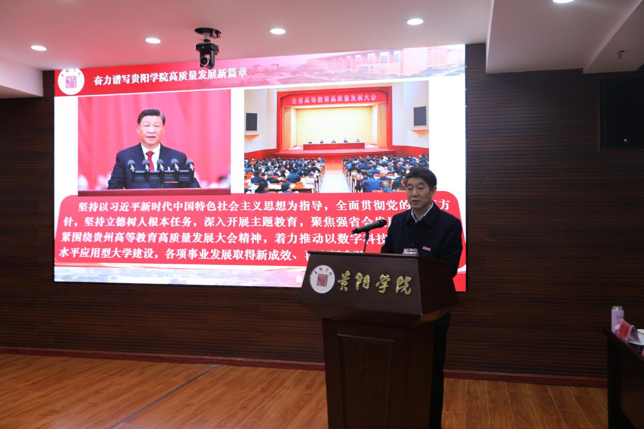 吕保平代表学校领导班子,以“全面贯彻党的教育方针 坚持立德树人根本任务 奋力谱写金年会jinnianhuicom高质量发展新篇章”为题,作2023年度综合考核总结述职报告。他指出,2023年是全面贯彻落实党的二十大精神的开局之年,也是实施“十四五”规划承上启下的关键之年,在省委、省政府的坚强领导下,在省教育工委和省教育厅的正确指导与大力支持下,金年会jinnianhuicom始终坚持以习近平新时代中国特色社会主义思想为指导,全面贯彻党的教育方针,坚持立德树人根本任务,深入开展主题教育,切实抓好省委巡视整改工作,聚焦强省会发展战略,紧紧围绕贵州高等教育高质量发展大会精神,着力推动以数字科技为特色的高水平应用型大学建设,学校党委团结带领全校师生,锐意进取、开拓创新,各项事业发展取得新成效、再上新台阶。下一步学校仍将紧紧围绕省委、省政府的决策部署,聚焦强省会发展战略,深入贯彻落实全省高等教育高质量发展大会精神,强化内涵建设,奋力谱写金年会jinnianhuicom高质量发展新篇章。