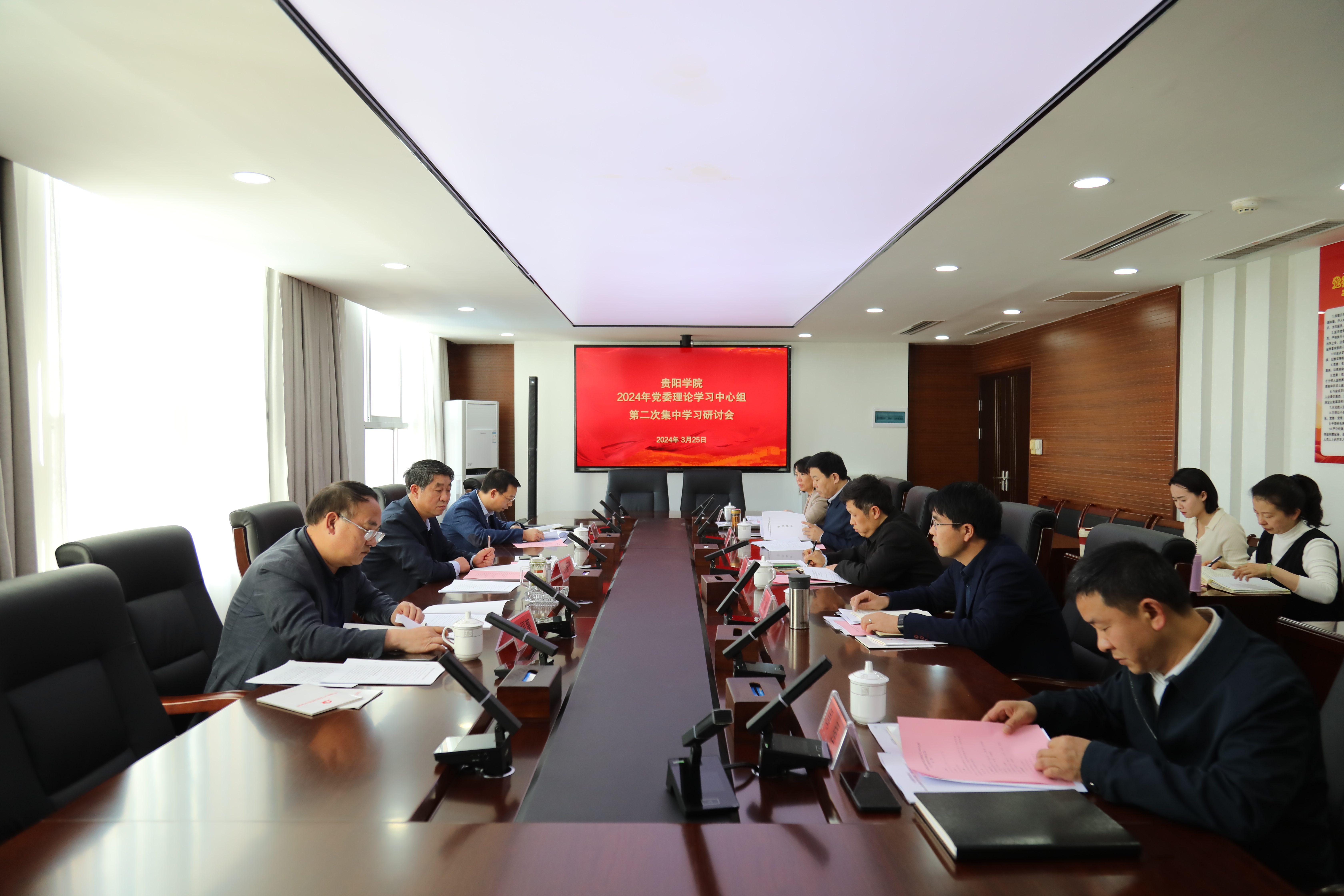 3月25日下午,学校在九思楼七楼会议室召开2024年党委理论学习中心组第二次集中学习研讨会,校党委书记吕保平主持并讲话。他强调,要深入学习贯彻全国两会精神和习近平总书记关于新质生产力的重要论述,全面贯彻党的教育方针,坚持把高质量发展作为学校教育的生命线。