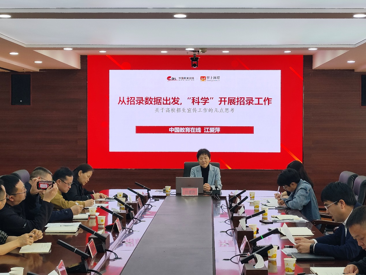 会后,学校邀请中国教育在线副总编江爱萍现场做了题为“新高考改革背景下招生工作思考”专题讲座。江爱萍首先对新高考改革的政策进行了深入解读,分析了其对招生工作带来的影响,分享了在招生规划、选拔标准、招生宣传等方面的实践经验和创新做法。她结合学校的学科专业特点,就金年会应对新高考改革,推进学校各专业招生宣传方面,开展了全面的辅导报告,就金年会适应新高考改革后的办学发展,提出了很好的指导建议。与会人员还就如何更好地适应新高考改革,提高招生质量和公平性等问题进行了热烈的讨论。