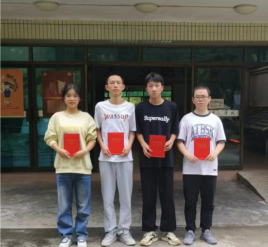 从左至右依次为杨贤龙、洪露露、杜海欣、王青飞(一等奖)