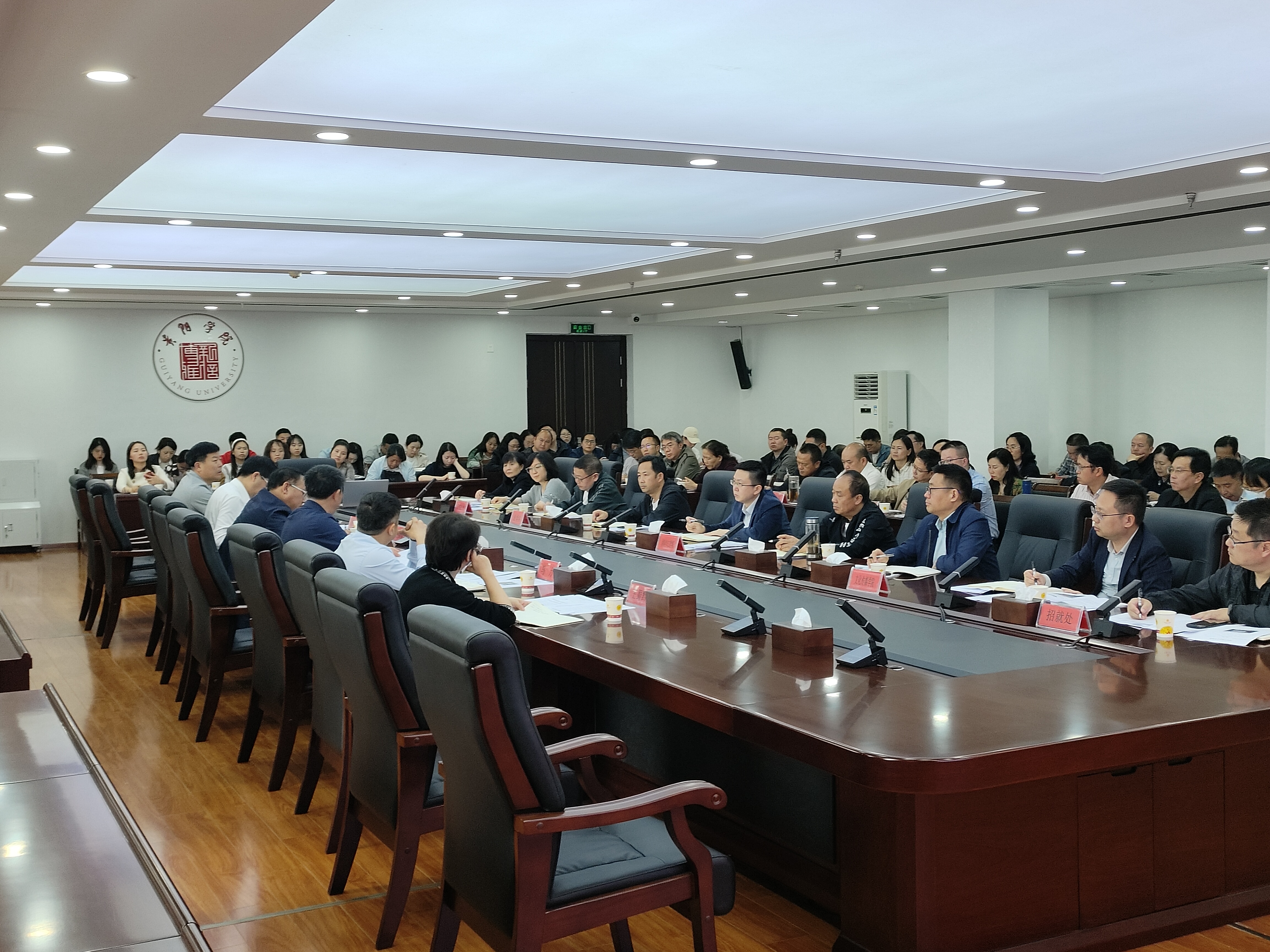会上,研究生管理处、招生与就业处分别作了工作汇报;材料科学与工程学院、文化传媒学院、法学院主要负责人分别做交流和表态发言;各校直部门负责人,各专业学院负责人,班主任,辅导员,就业指导老师参会。