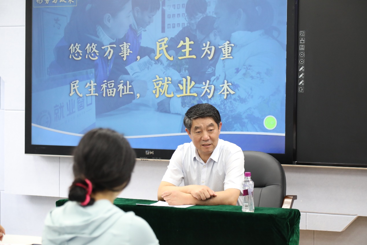 为深入学习贯彻习近平总书记关于落实就业优先政策的重要指示批示精神,认真落实就业工作“一把手”工程,6月28日,学校党委书记吕保平走进课堂,为2022级英语专业学生讲授主题为《大学生就业的形势与机遇》的“形势与政策”课。
