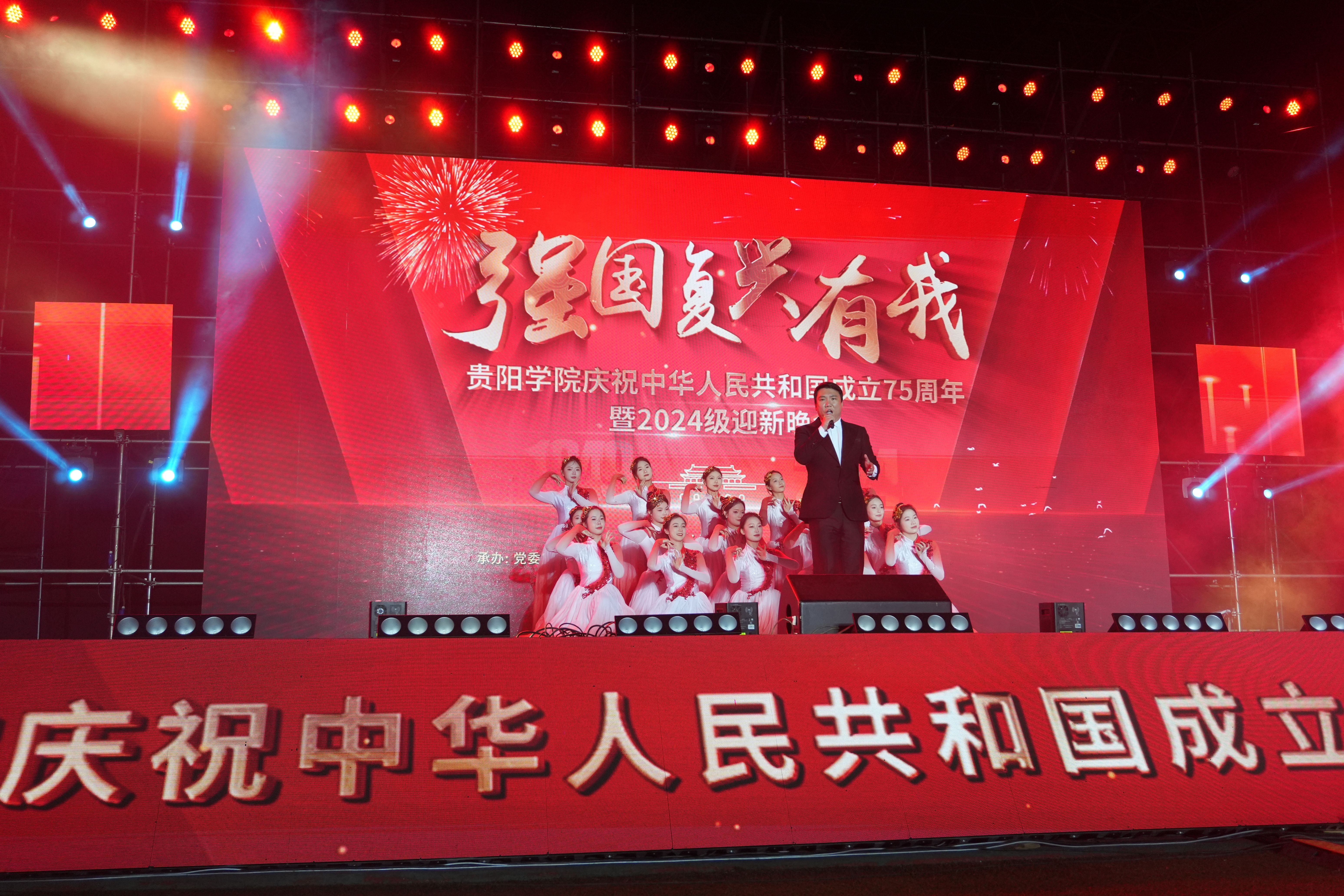 9月26号,学校在田径场举行“强国复兴有我”——金年会jinnianhuicom庆祝中华人民共和国成立75周年暨2024级迎新晚会。校领导赵福菓、马力、郭丽出席晚会,相关职能部门负责人、教师代表与3000余名新生欢聚一堂,共赏晚会,共迎国庆。