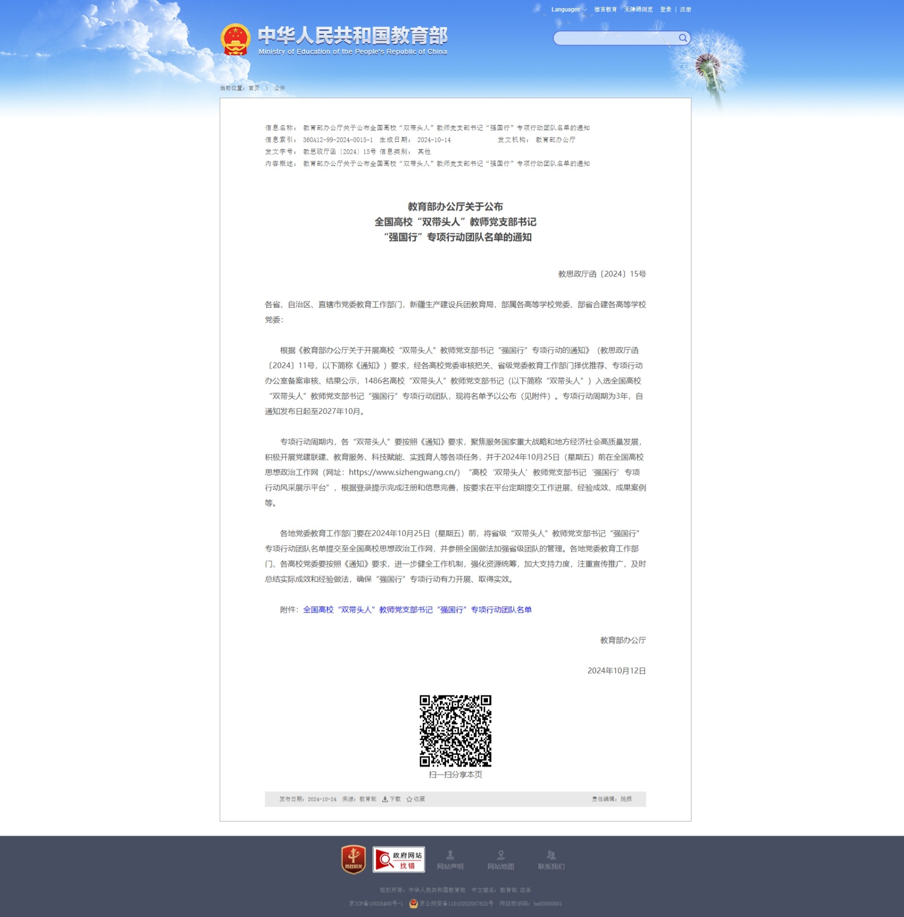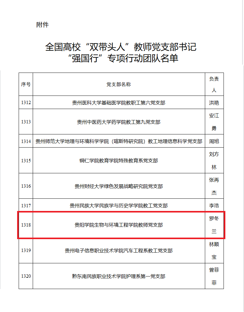 近日,教育部办公厅公布了全国高校“双带头人”教师党支部书记“强国行”专项行动团队名单,金年会罗冬兰任党支部书记的生物与环境工程学院教师党支部成功入选。