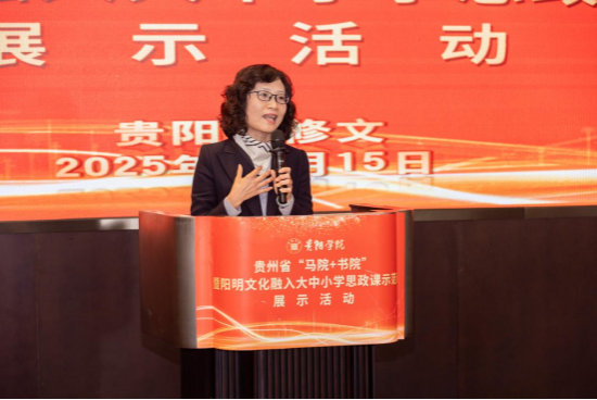 李军在讲话中指出,贵州作为阳明心学的诞生地,肩负着用好地方文化资源办好思政课的重要使命。阳明文化中“知行合一”“致良知”等思想对推动思政教育从知识传授转向价值引领具有重要现实意义。近年来,贵州将阳明文化融入“大思政课”体系建设,推动课题研究、课程开发与实践体验相结合,形成了“研—教—学—践”一体化育人机制。针对全省“马院+书院”暨阳明文化融入大中小学思政课一体化建设,李军提出三点要求:一要在传承中华优秀传统文化上实现新突破,推动思政课内容从认知、认同到践行的转化;二要在提升思政课教师素养上取得新成效,打造具有贵州特色的思政“金课”;三要在“马院+书院”协同育人机制上凝聚合力,共建思政育人新高地,培养担当民族复兴大任的时代新人。