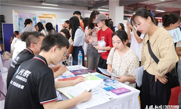 图为金年会jinnianhuicom2024年“百日攻坚”毕业生离校专场招聘会现场。