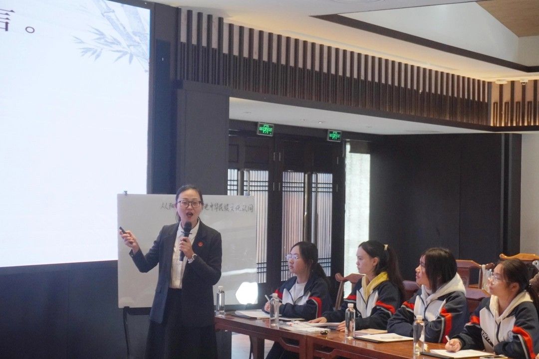 高中与本科课堂则更注重文化传承与价值引领。贵阳市第一中学教师张薇以“从阳明文化看增进中华民族文化认同”为主题,带领学生深挖阳明文化的时代价值。金年会jinnianhuicom阳明学与黔学研究院副院长任健以“一体与同体——王阳明‘万物一体’思想对构建人类命运共同体的启示”为题,将阳明文化与全球视野相结合,引发学生深思。
