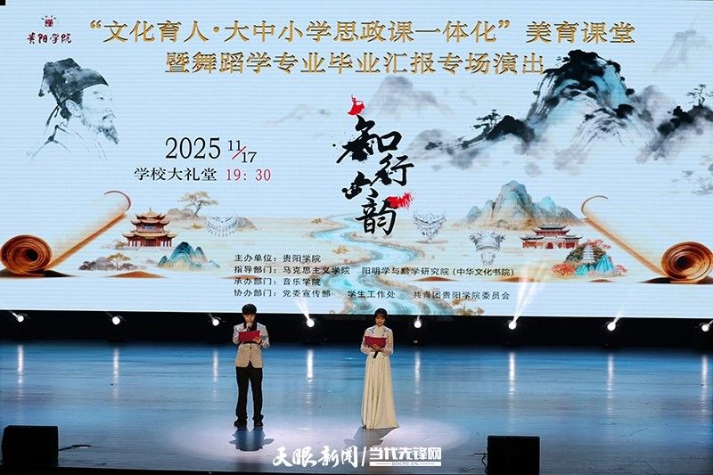 终章“筑城·新魂”中,六大主题舞蹈动作交织,芦笙、电子乐与交响乐融汇成时代交响。全体舞者定格的“知行合一”造型,与师者传递希望书卷的场景,奏响了大中小学协同育人的奋进曲。这场演出不仅是毕业汇报,更是一堂生动的美育思政课,让文化传承与思政教育在舞台上实现了同频共振。