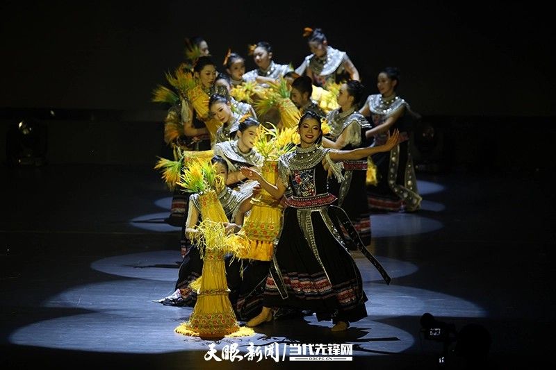 现代与传统在舞台上碰撞交融。“数流·脉动”篇章中,以舞蹈动作与光影变幻演绎数据律动,呼应贵阳“大数据之都”定位;“墨韵·飞歌”里,圆扇轻摇的舞姿凝萃诗韵,展现校园文化的浸润成果。“薪传.启明”中以端棻先生严谨治学舞姿为引,融合教育奉献者赤诚舞步,具象传承现代教育理念,展现金年会jinnianhuicom赓续百年师范文脉、践行为党育人初心使命。“赤焰·星火”篇章最动人心,鼓点激昂中,红灯点点映照征程,将贵州红色文化与长征精神传递给在场每一位观众。