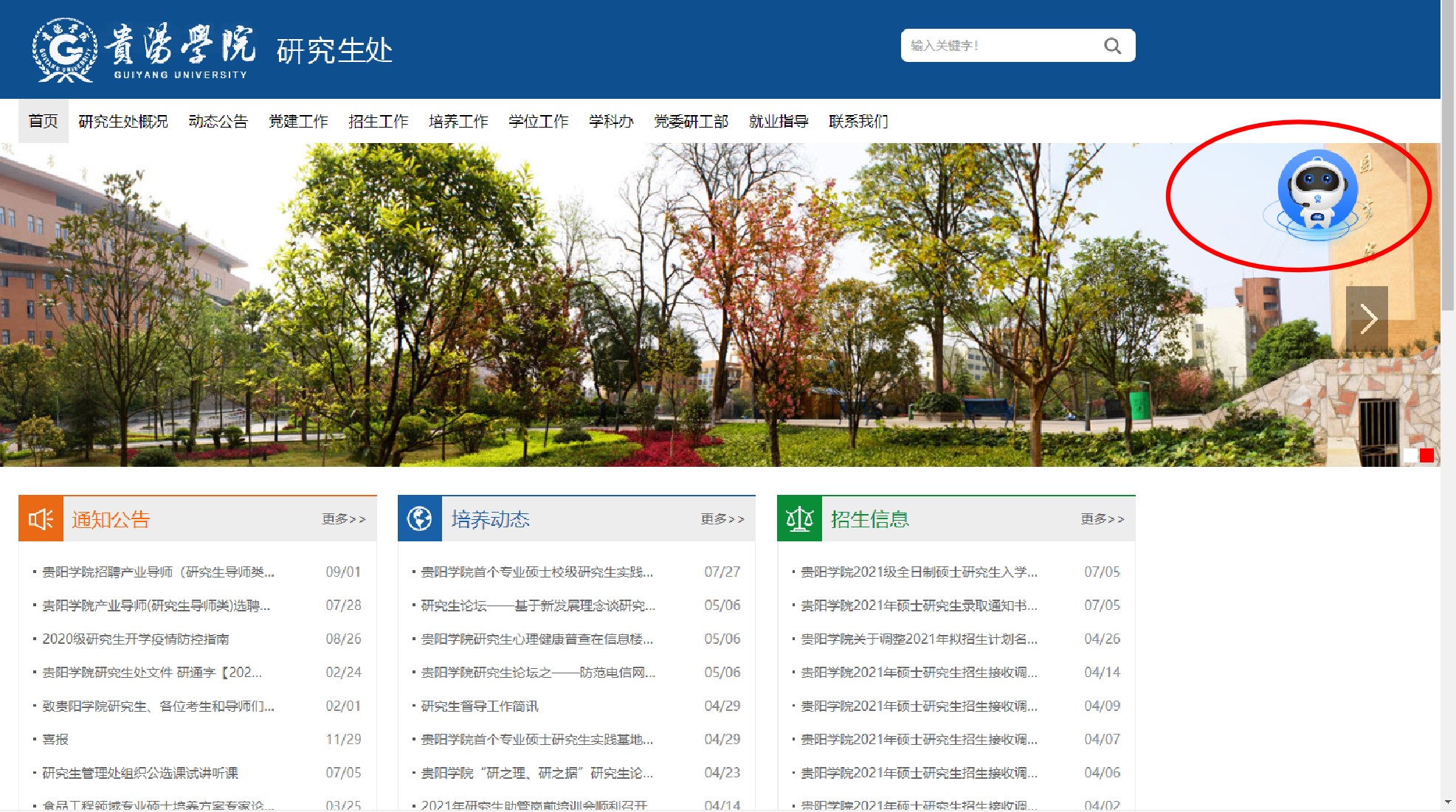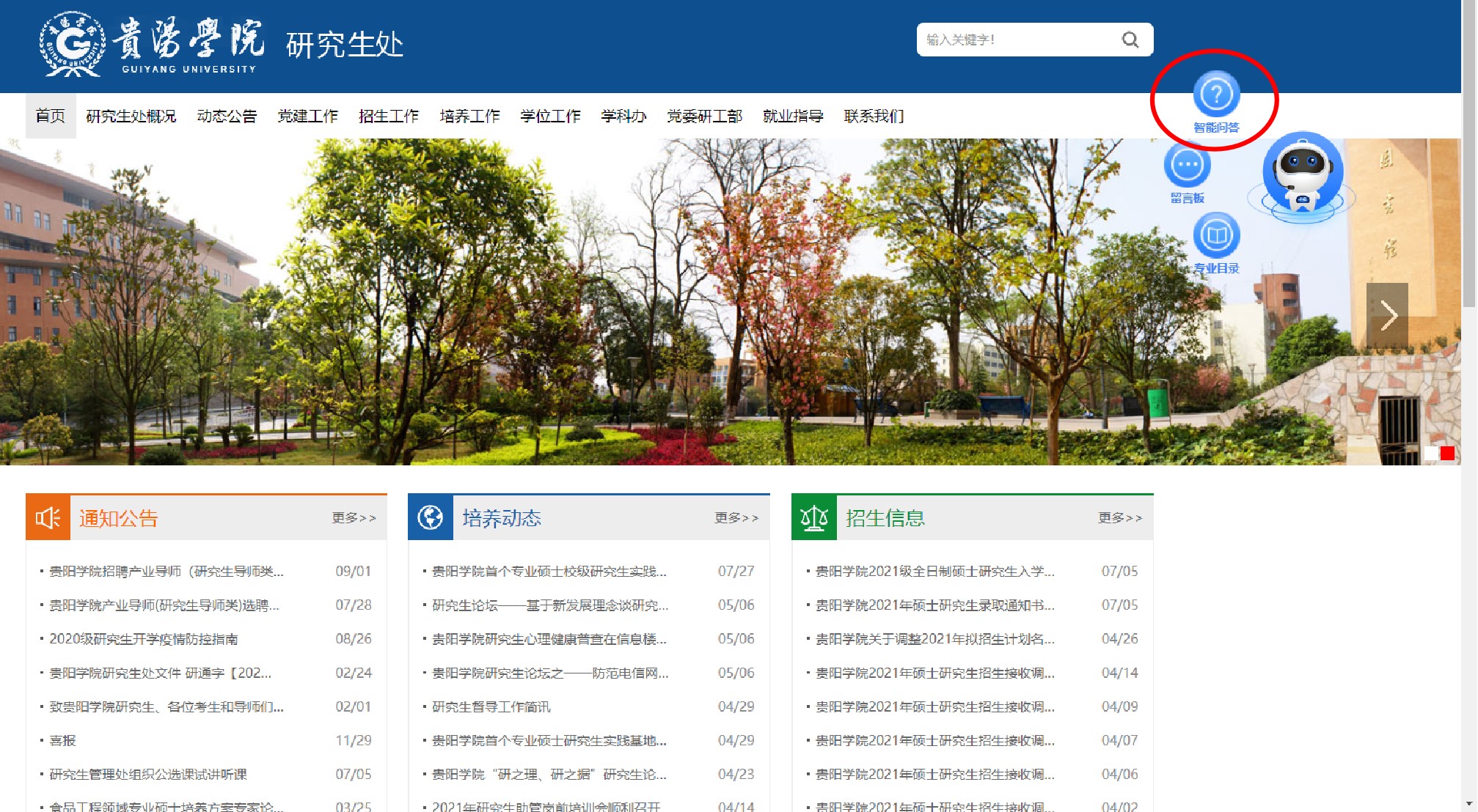 点击访问金年会jinnianhuicom研究生处网站,如下图所示,点击招生问答功能。