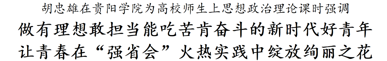 广大青年学子要立志做有理想、敢担当、能吃苦、肯奋斗的新时代好青年,牢固树立正确的政治理想、社会理想,勇于为贵阳贵安发展担当,努力在吃苦中成长、成才、成功,不断通过艰苦奋斗、团结奋斗成就不负青春、不负韶华、不负时代的精彩人生。广大教师要坚持理论性和实践性相统一,扎实推动思想政治理论课改革创新,努力把严肃深刻的道理讲得吸引人、感染人、打动人,不断增强思政课的思想性、理论性和亲和力、针对性,让教学更加贴近生活、贴近实际、贴近学生,更好帮助学生扣好人生的第一粒扣子。