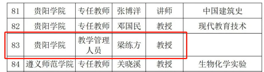 近日,贵州省教育厅办公室对2024年贵州省普通本科高校“金师”(教学名师)评选结果和2024年普通本科高校省级“金课”(一流课程)认定结果进行公示。我院副院长梁练方教授荣获省级“金师”,教师王兰英、吴建棠、杨颖旎所申报的三门课程荣获省级“金课”认定!