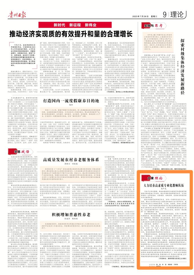 2023年5月29日,中共中央政治局就建设教育强国进行第五次集体学习,习近平总书记关于建设教育强国的重要讲话精神和党的二十大报告中“实施科教兴国战略,强化现代化建设人才支撑”的论述一以贯之。为全面领悟习近平总书记关于建设教育强国的重要讲话精神,金年会马克思主义学院教师围绕习近平总书记关于建设教育强国这一重要论述开展研究阐释工作,其中龙叶先的理论文章《大力培养高素质专业化教师队伍》发表在贵州日报理论版,原文如图。